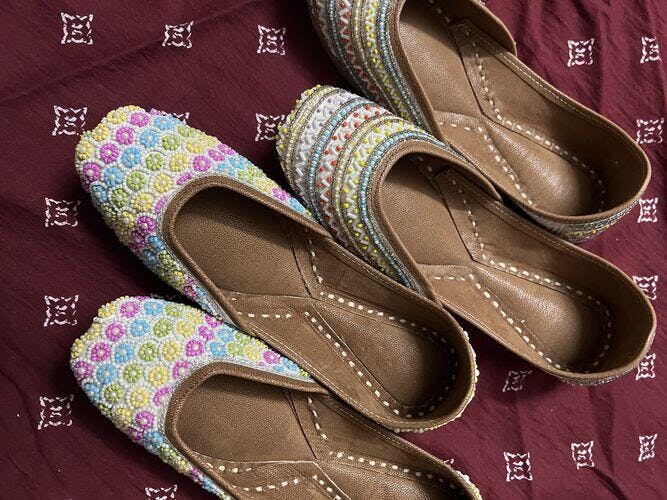 Wash with care in 2 weeks difference. Our footwear are extremely soft, but if your feet are feeling extra sensitive, line the inside of your footwear with mustard oil for a day and leave. Keep them dry and away from moisture. If at all exposed to moisture, please dry them out for a few hours before putting them back in