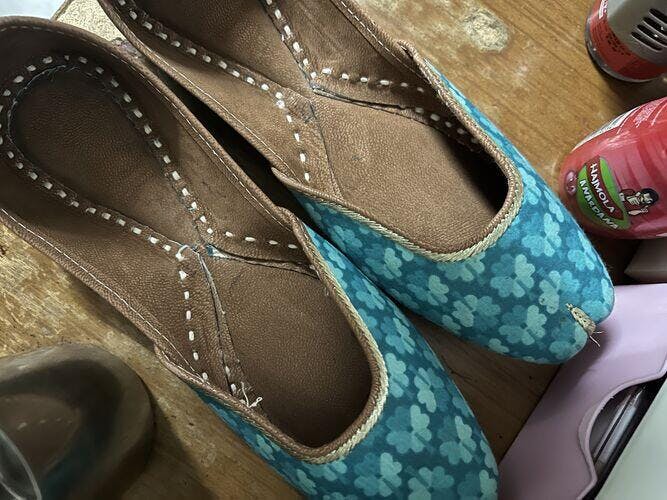 Wash with care in 2 weeks difference. Our footwear are extremely soft, but if your feet are feeling extra sensitive, line the inside of your footwear with mustard oil for a day and leave. Keep them dry and away from moisture. If at all exposed to moisture, please dry them out for a few hours before putting them back in